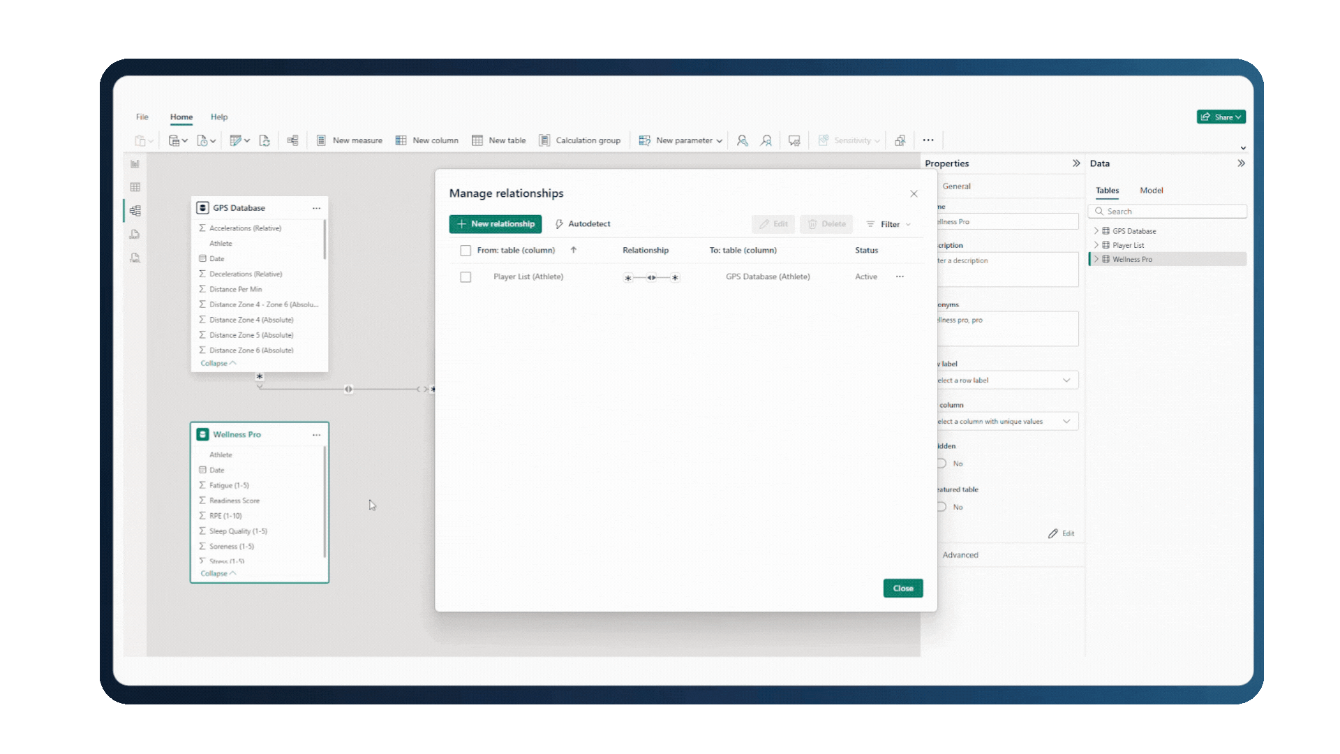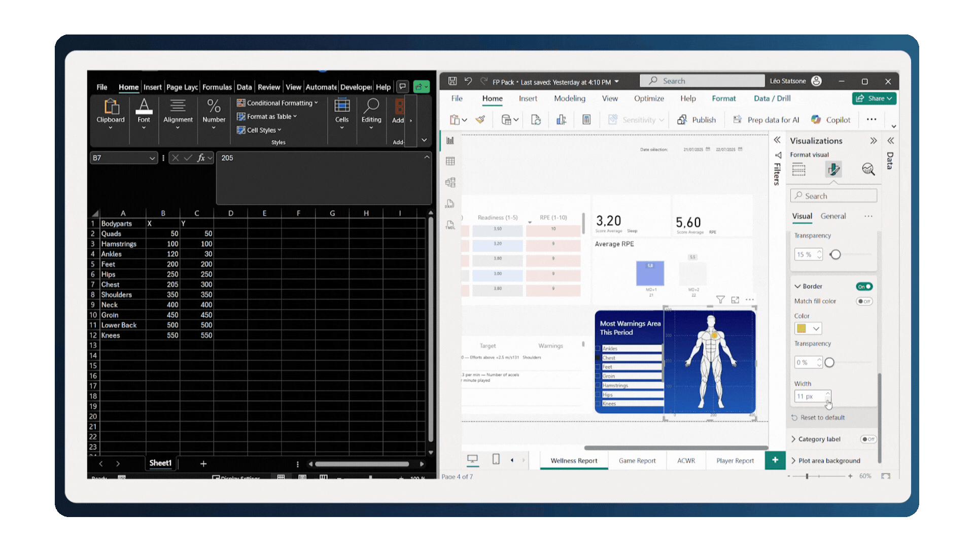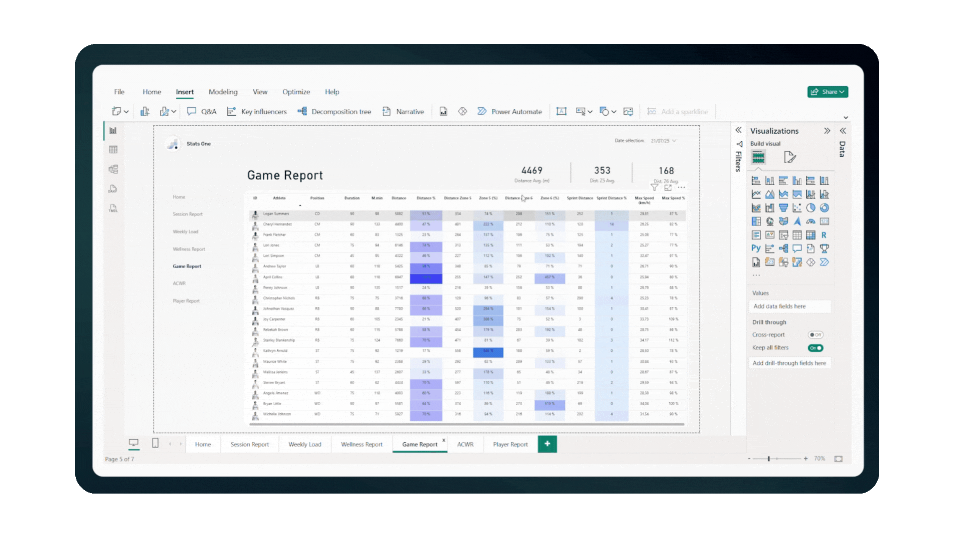 GPS, Wellness, and Player List data sheets all connect seamlessly, so your reporting is ready in second.